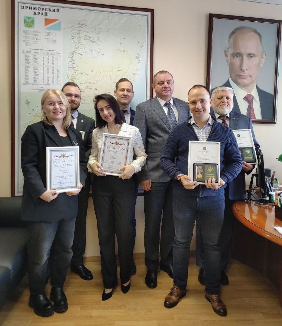 Кроме того, за вклад в развитие юстиции на территории региона, ведомственными наградами Минюста России поощрены служащие Правительства Приморского края.