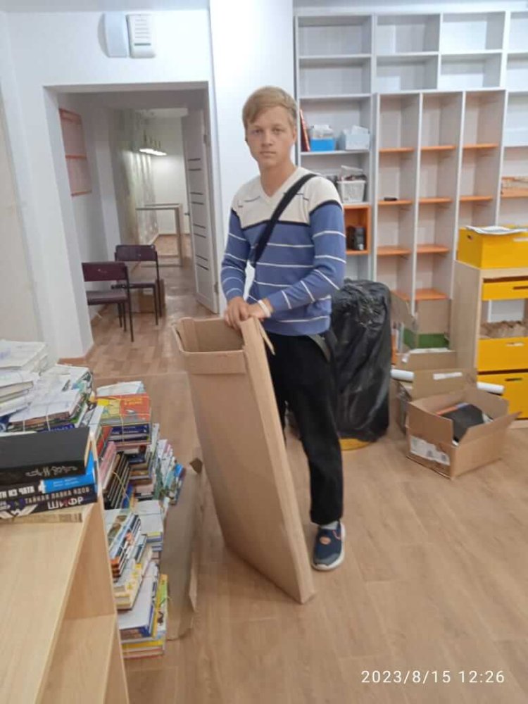 Ребята расставляли книжный фонд, приводили в порядок новые пространства и выносили мусор. Помощники разгружали машины с новыми книгами, распаковывали и расставляли мебель, протирали стеллажи от пыли, передвигали мебель, переносили книжный фонд. Вывозили часть книг на хранение в отдел резервного хранения.