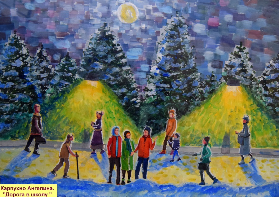 Необыкновенно выглядит зима в работах детей: пейзажи, зимние развлечения, снеговики, волшебство зимних сказок и новогодней ночи.