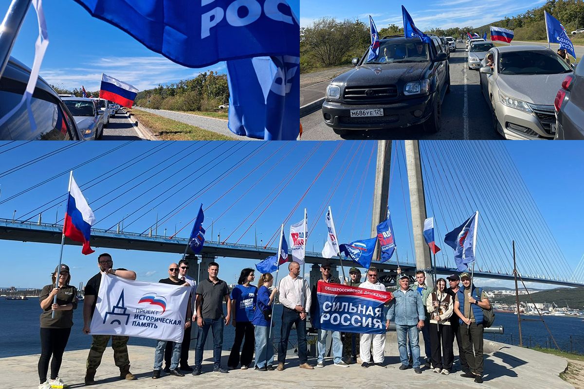 «Единая Россия», сторонники партии и «Молодая гвардия» присоединились к пятничному автопробегу, посвященному Дню присоединения республик Донбасса к России. Маршрут стартовал у Новосильцевской батареи на острове Русский, а финальной точкой мероприятия стал район бухты Патрокл, расположенный в материковой части Владивостока.
