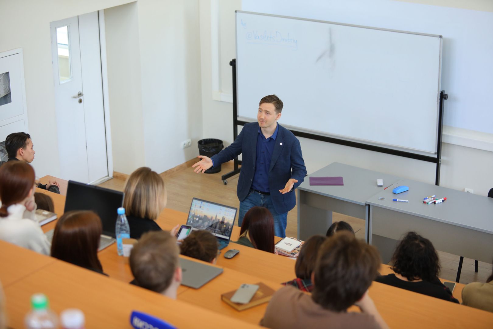 В Дальневосточном федеральном университете в рамках образовательного интенсива «Вслух о важном» прошел мастер-класс для студентов-журналистов. Секретами профессионального мастерства с учащимися поделился телеведущий и блогер, глава политической партии «Держава» и объединения «Адекватная Украина» Дмитрий Василец.