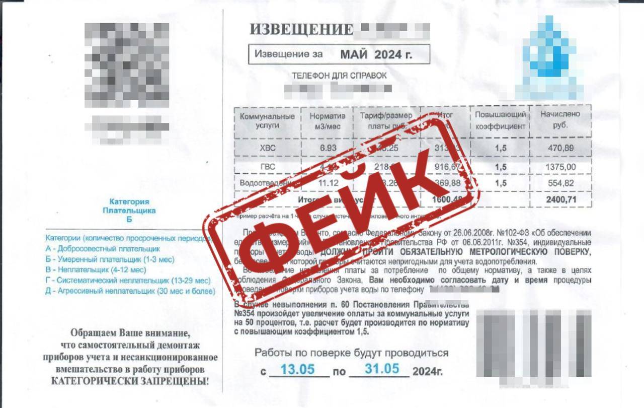 Квитанции о поверке счетчиков рассылают мошенники жителям Приморья
