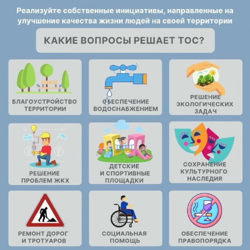 Проблемы благоустройства придомовых, общественных территорий, уличного освещения, установки детских площадок, ремонт тротуаров и ливневых канализаций - успешно решает ТОС (территориальное общественное самоуправление).