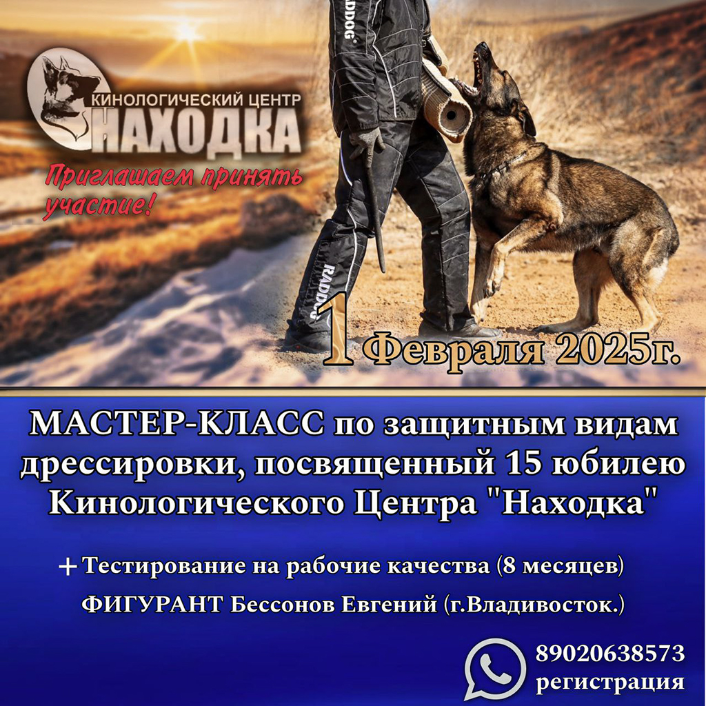 1 февраля в 11.00 на дрессировочной площадке пройдет мастер-класс по защитным видам дрессировки, посвященный 15-летнему юбилею со дня создания центра.