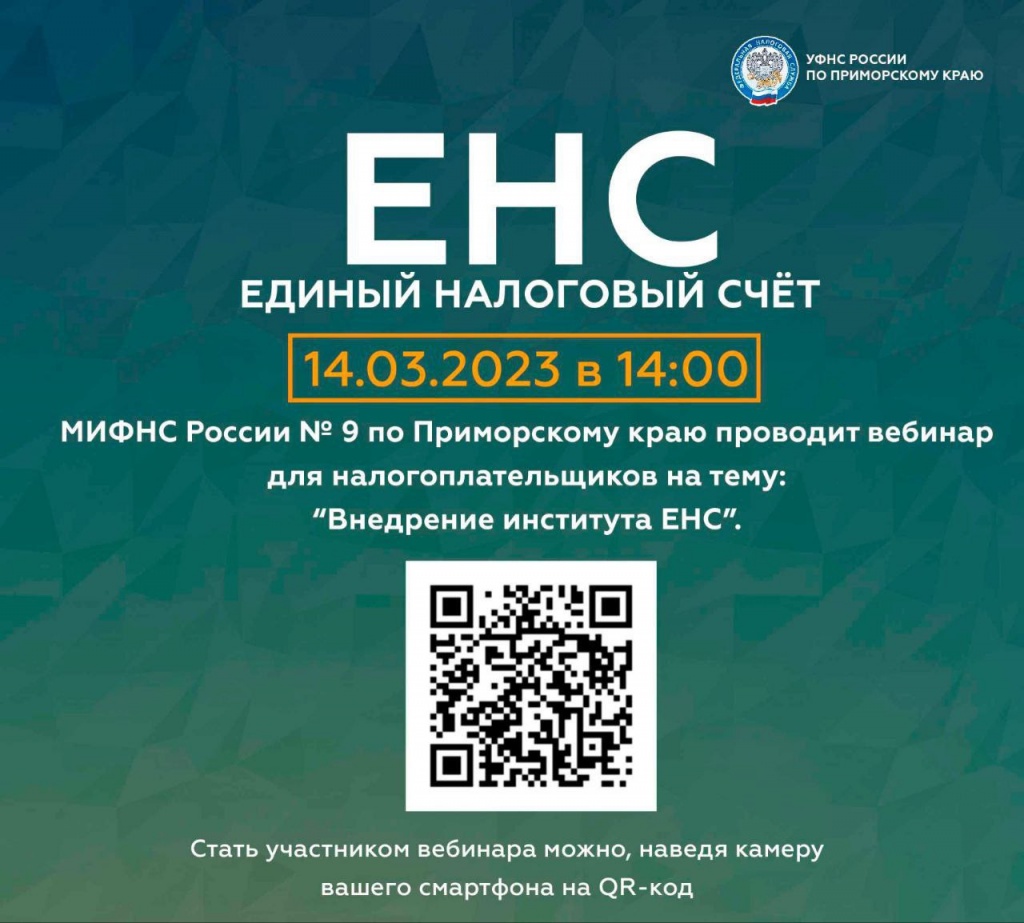 МИ ФНС России № 9 приглашает на вебинар по теме: «Внедрение ЕНС, зачет и возврат переплаты на ЕНС с 2023 года».