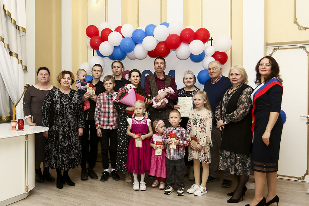 Сегодня, 22 марта, в торжественном зале управления ЗАГС Администрации Находкинского городского округа состоялась государственная регистрация рождения десятого ребенка в семье Симуткиных-Вяжанских Прохора Вилорьевича и Веры Юрьевны. 10 марта в многодетной семье на свет появился десятый ребенок - дочь, которую назвали Анита. Мероприятие также посетили бабушка и дедушка и друзья семьи.