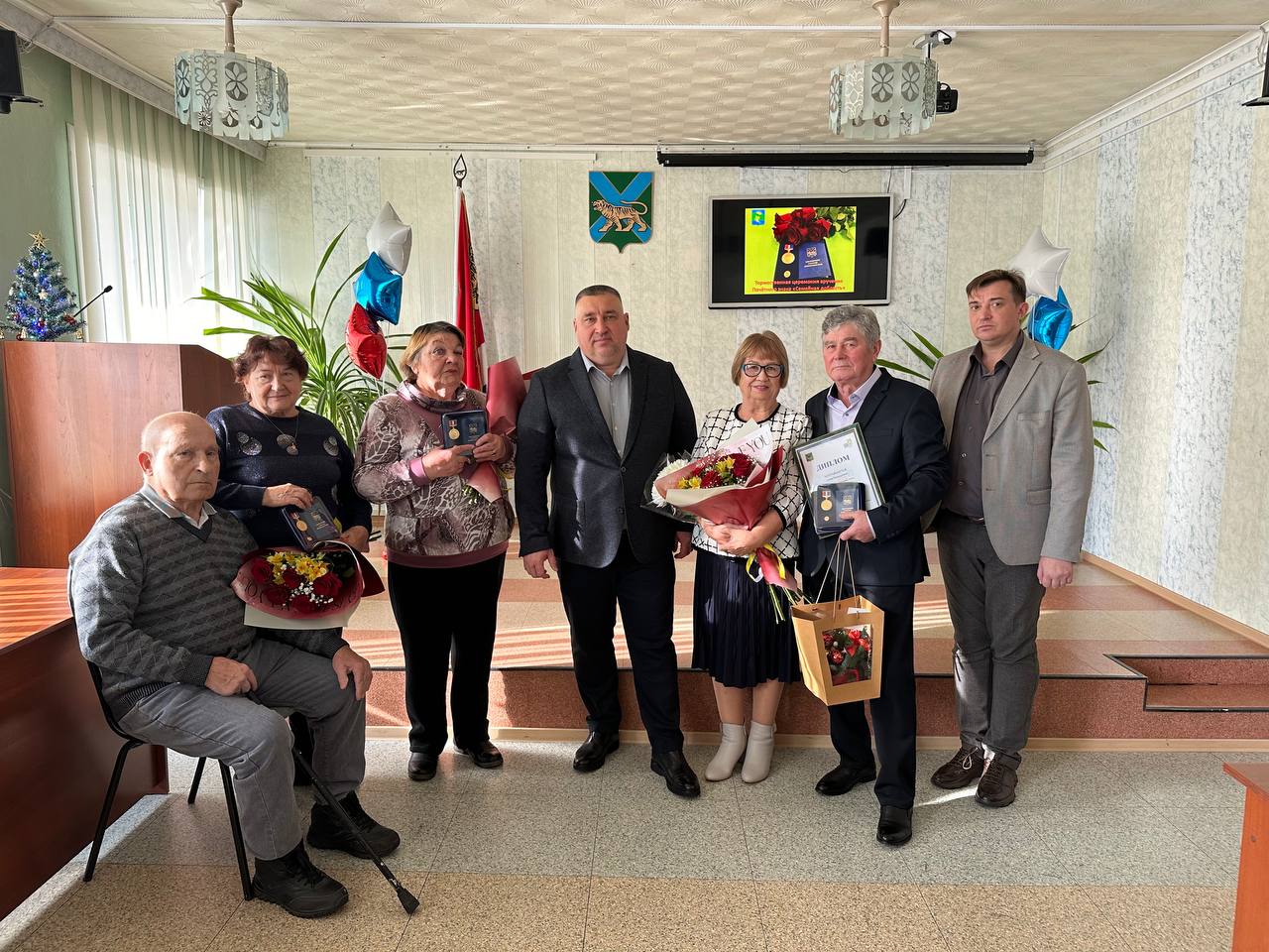 Почетного знака Приморского края удостоены Александр и Вера Бондаренко, Александр и Нина Бобневы, а также Йозос и Галина Садукас. Награду супругам вручали Глава округа Александр Степанов, председатель Думы Антон Арсентьев, заместитель главы администрации Виталий Сопатенко и руководитель аппарата Рита Томашева.