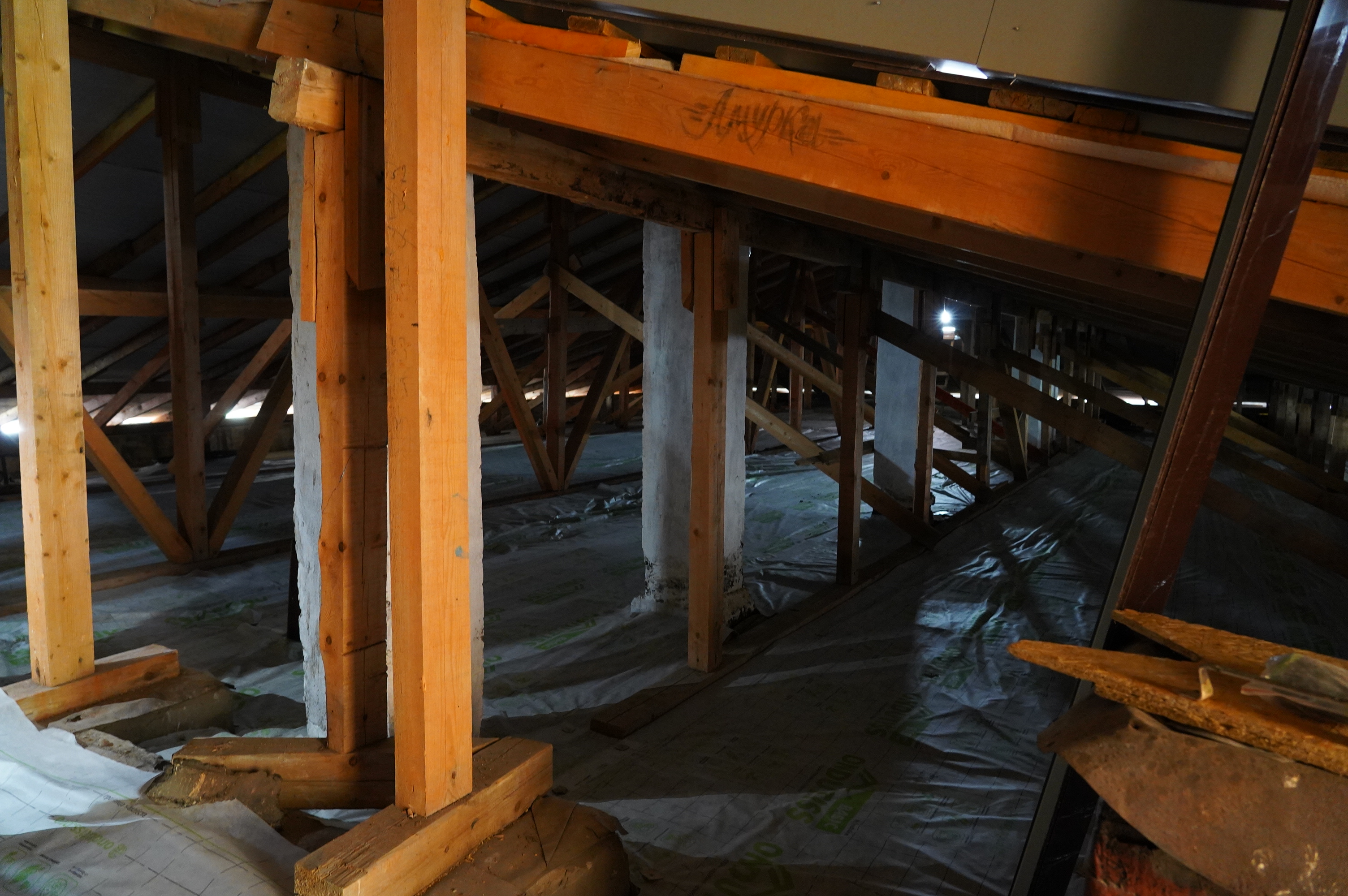 Подрядчиком проведен полный демонтаж устаревшего покрытия, сделано утепление крыши и возведено новое перекрытие.