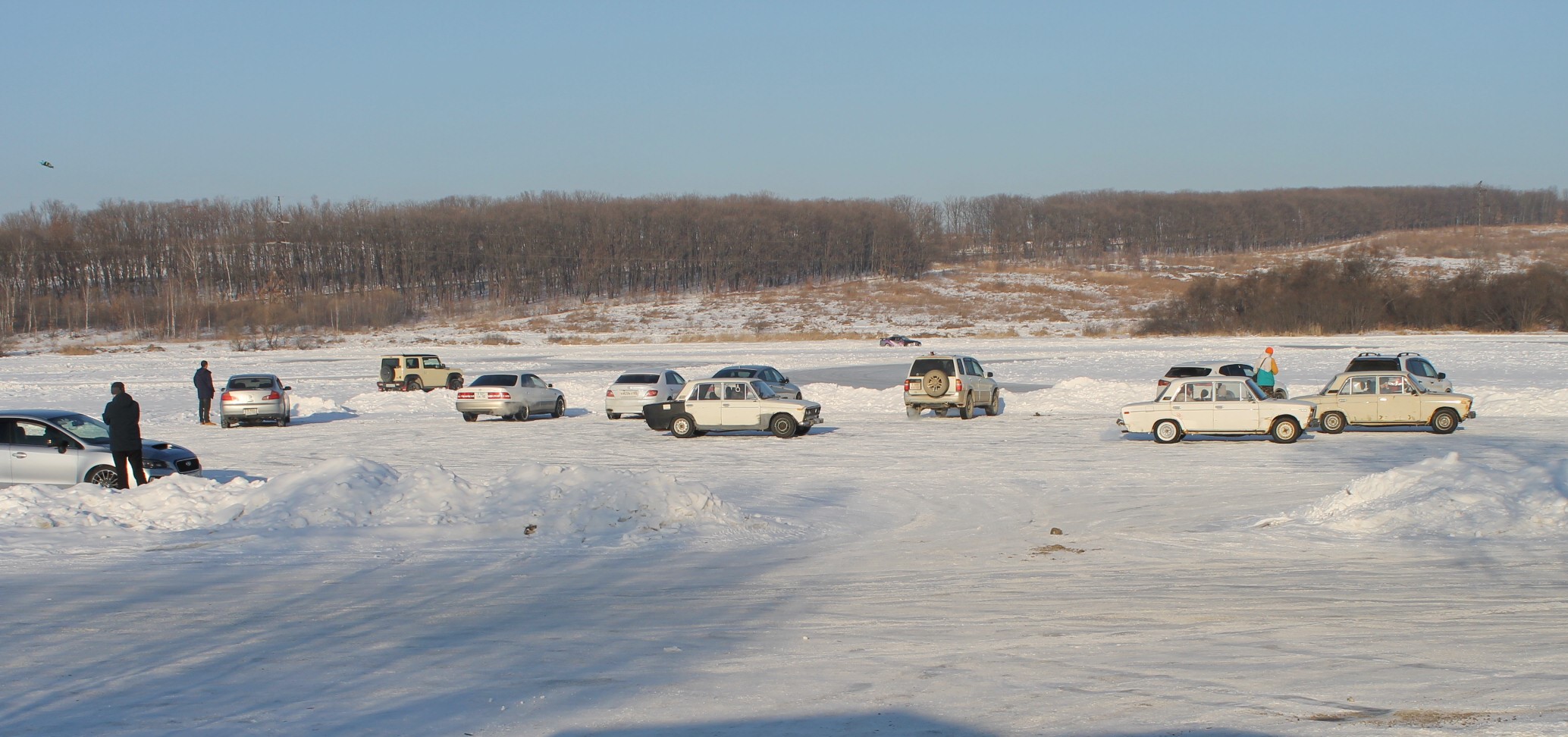Озеро в районе Солнечного – место притяжения водителей-экстремалов. На льду часто устраивают гонки.