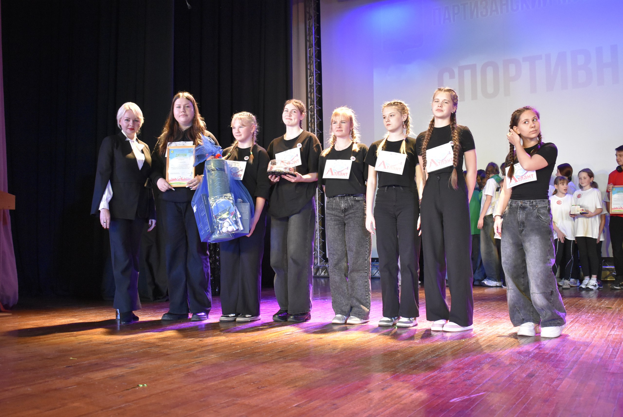 На большом экране зрителям показали видеоролик, рассказывающий о проекте «Спортивная среда», реализуемом во всех школах округа. Инициатива объединила свыше 3500 тысяч человек и успела полюбиться не только учениками, но и учителями. Каждую среду детей ждали интересные спортивные мероприятия, состязания, динамические зарядки, встречи со спортсменами и участниками специальной военной операции.