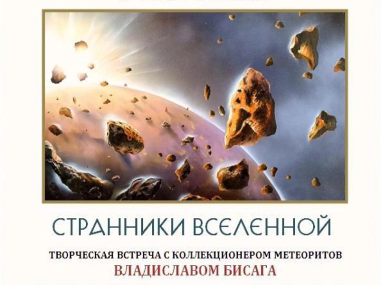 27 апреля в 14:00 в арт-гостинной выставочного центра "Галерея" в рамках космической выставки "Автостопом по галактике" состоится творческая встреча с коллекционером метеоритов Владиславом Бисага под названием "Странники