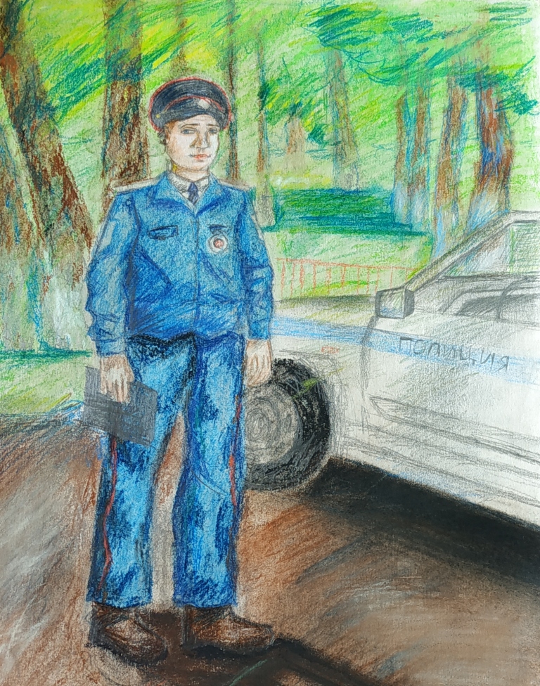 Все рисунки получились яркие и жизненные. Герои работ отображены в реальных жизненных ситуациях. Выглядят они ответственными и в тоже время очень привлекательными, с характерными атрибутами блюстителей правопорядка.