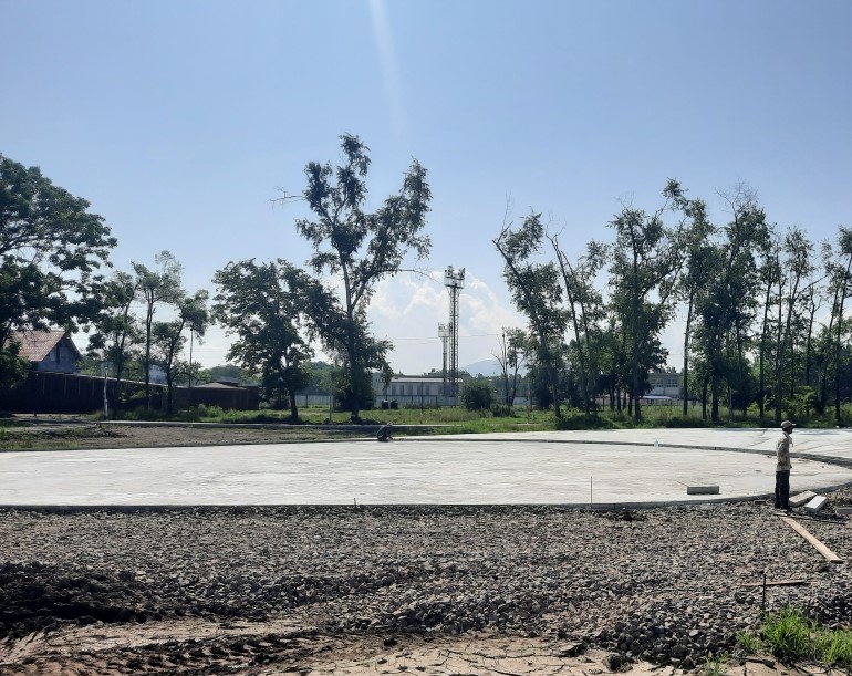 Завершилась прокладка кабеля и установка опор освещения.