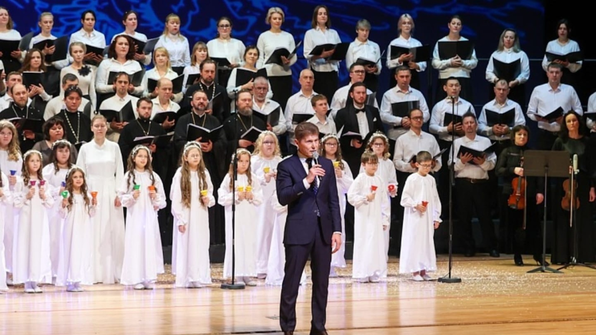 Большой рождественский концерт состоялся на приморской сцене Мариинского театра 17 января. В праздничном мероприятии приняли участие Губернатор края Олег Кожемяко, митрополит Владивостокский и Приморский Владимир, командующий Тихоокеанским флотом Виктор Лиина.