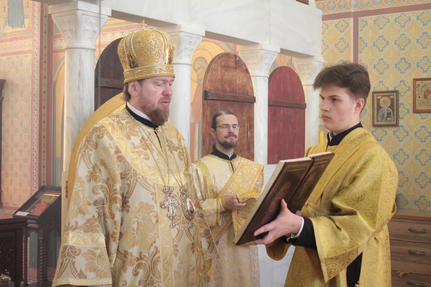 Его Высокопреосвященству сослужили: благочинный I Владивостокского благочиния, исполняющий обязанности благочинного II Владивостокского благочиния, настоятель храма святителя Спиридона Тримифунтского г. Владивостока протоиерей Сергий Шуталев; настоятель Казанского храма протоиерей Ростислав Мороз; настоятель храма святого благоверного великого князя Александра Невского при Уссурийском Суворовском военном училище иерей Павел Моисеев; настоятель храма святого Пророка Божия Илии при 83-й отдельной гвардейской десантно-штурмовой бригаде иерей Сергий Качев; иерей Михаил Дубанов; иерей Роман Бурдинский; иерей Дионисий Гордеев; ответственный за организацию архиерейских богослужений иерей Дионисий Ищенко.