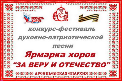 4 ноября в 13:00 во Дворце культуры «Прогресс» г. Арсеньева состоится гала-концерт VIII Ярмарки хоров «ЗА ВЕРУ И ОТЕЧЕСТВО» (фестиваль-конкурс духовно-патриотической песни).