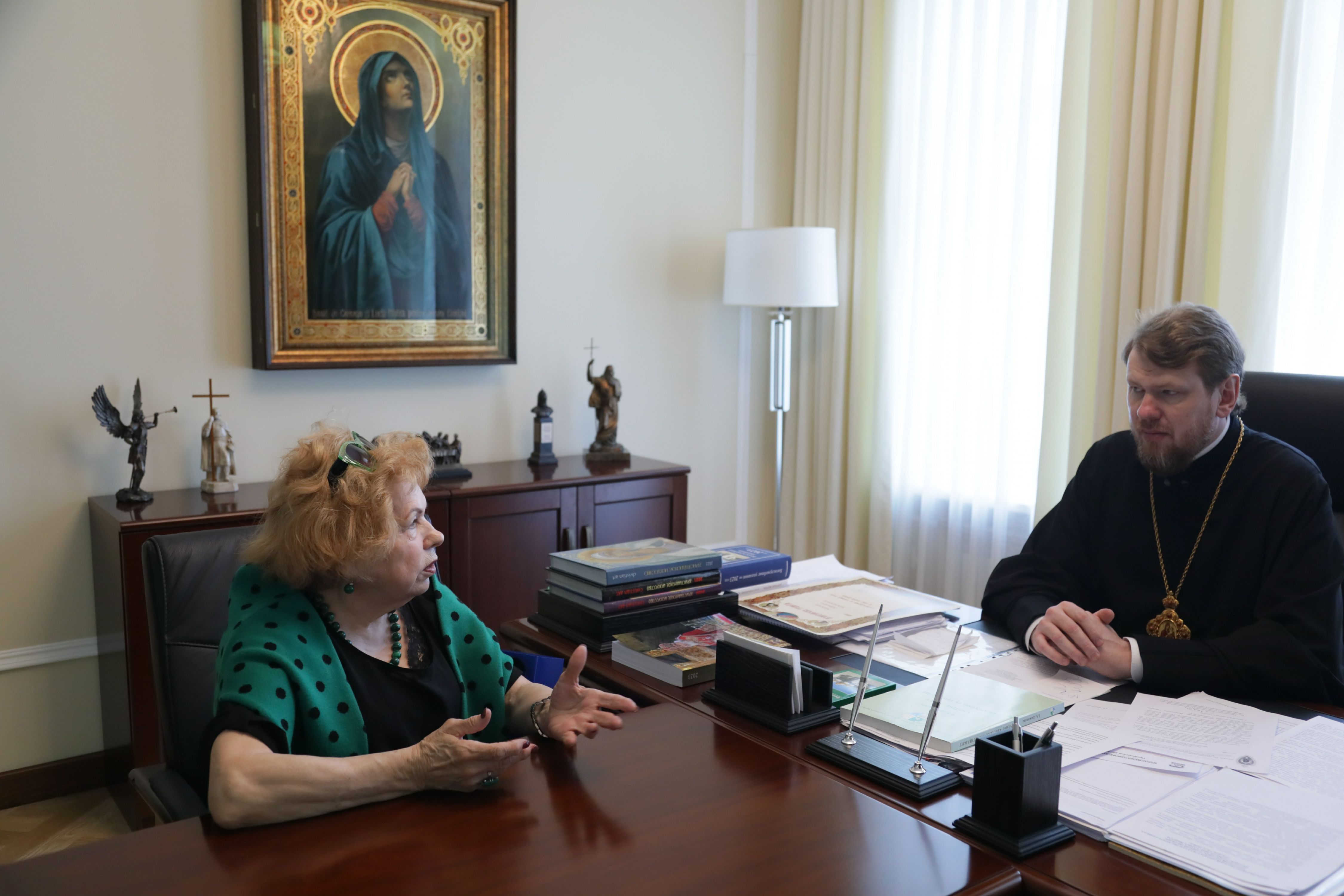 Владивосток . 19 мая 2023 года в Епархиальном управлении Владивостокской епархии состоялась встреча митрополита Владивостокского и Приморского Владимира и председателя землячества «Мое Приморье» в г. Москве доктора филологических наук, профессора, академика, Почетного работника высшего образования России Е.А. Дюжиковой.