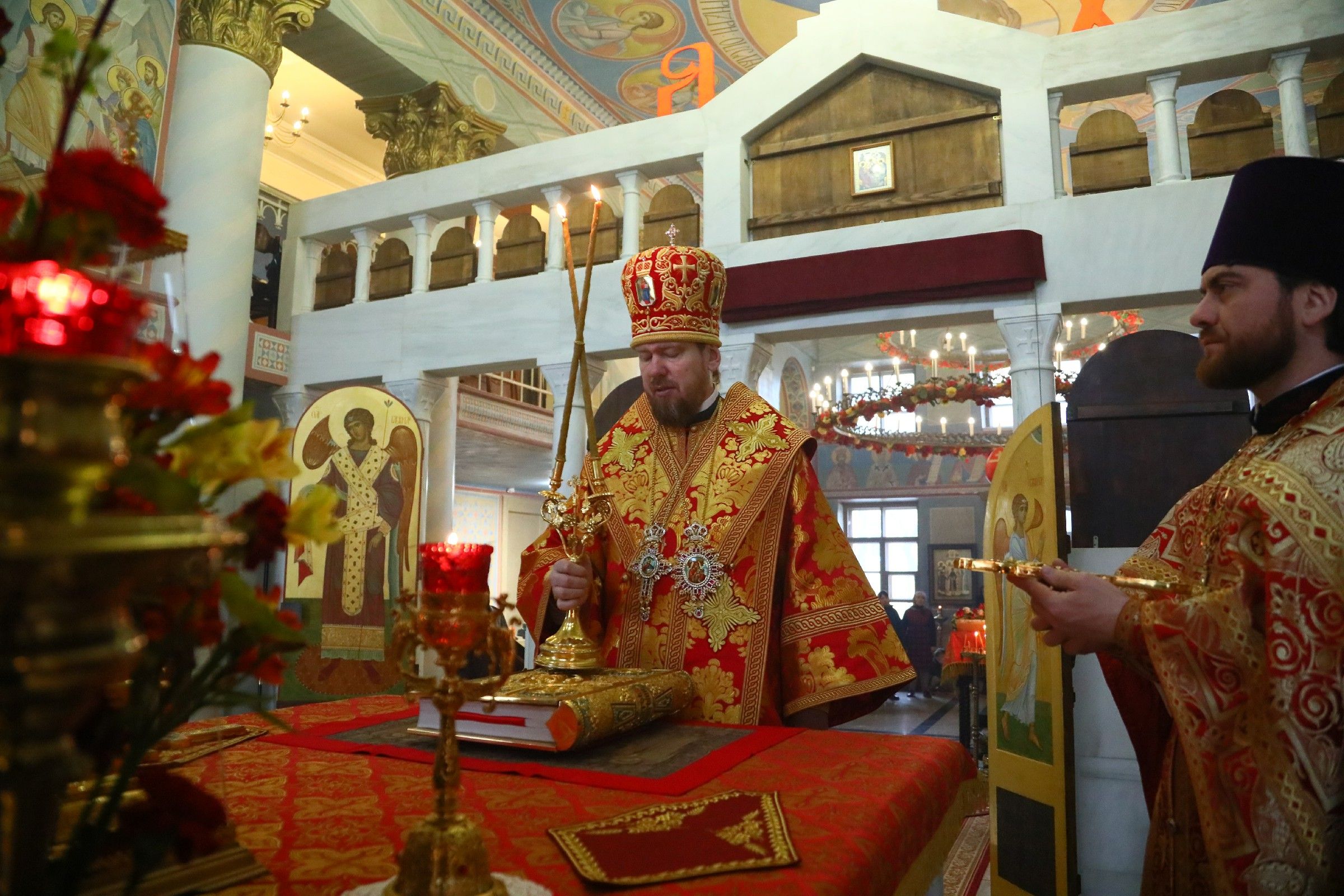 Его Высокопреосвященству сослужили: настоятель Казанского храма протоиерей Ростислав Мороз; иерей Михаил Дубанов; иерей Роман Бурдинский; иерей Дионисий Гордеев; ответственный за организацию архиерейских богослужений иерей Дионисий Ищенко.