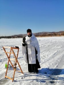Ю. Н. Богданов накануне созвонился с настоятелем зарубинского храма отцом Алексием, и тот приехал на освящение. В святую воду жители села тоже по традиции начинают окунаться после 12 часов – как раз когда наступает Крещение. Народу было немало и ночью, и на следующий день. К андреевской проруби приезжают даже жители других сел и поселков района. Были в этом году и из Славянки. Те, кто не решается окунуться в освященную ледяную воду, набирают ее, чтобы исполнить обряд дома.