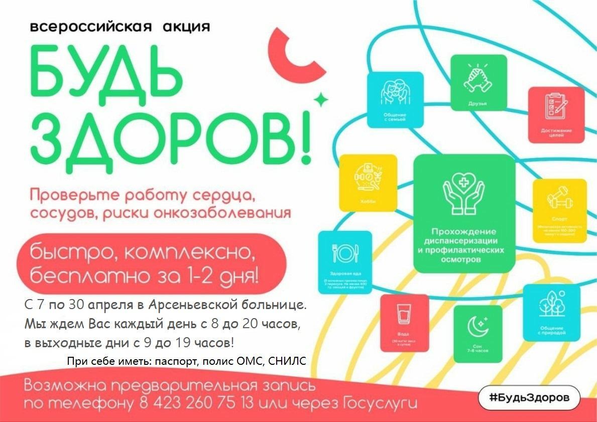 Акция «Будь здоров!» стартовала в арсеньевской поликлинике 7 апреля. Она продлится до конца месяца.