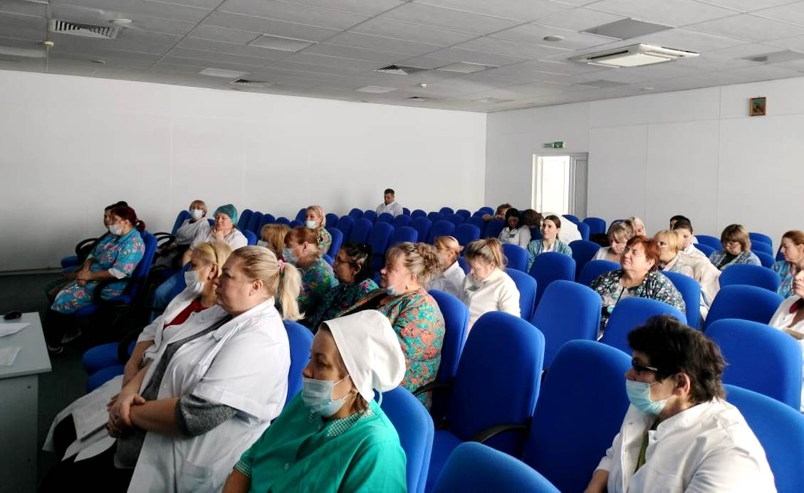 Обучающее мероприятие было организовано для кухонных работников. Коллеги напомнили медперсоналу об основных правилах и требованиях, связанных с эпидемиологической безопасностью,