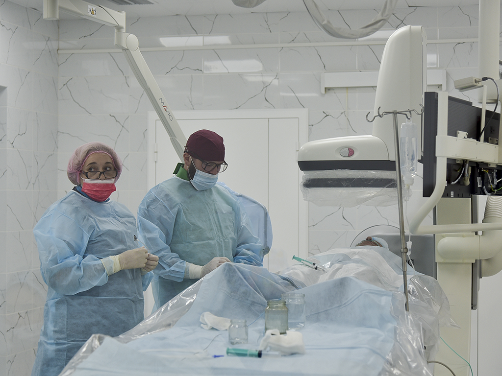 Выяснилось, что у пациента полностью перекрыта артерия, которая питает большую часть сердца. Для удаления тромба медики провели операцию прямо внутри кровеносного сосуда. Свои действия хирург наблюдал на экране ангиографического комплекса.