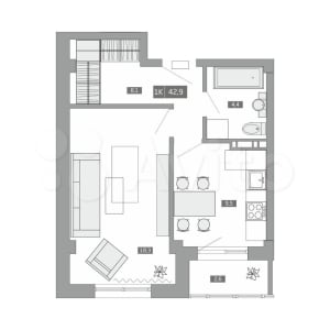 - Общая площадь: 43 м²