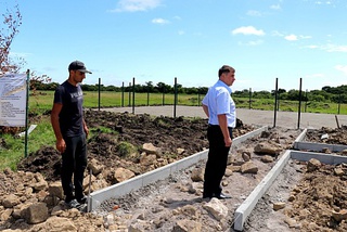 Большая часть строительства позади. На данном этапе уже произведена отсыпка участка и подготовлено основание под заливку бетона, установлен бордюр и столбы для ограждения.